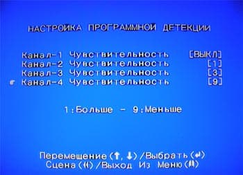 И настройка программной детекции движения (можно выставить уровень чувствительности датчика от 1 до 9, либо вообще его отключить).