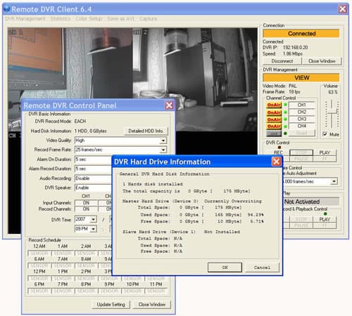 Как мы ранее увидели, эта модель видеорегистратора может быть подключена к локальной сети. С помощью идущего в комплекте программного обеспечения, подключившись к видеорегистратору, можно просматривать архив видеозаписей и проводить удаленную настройку параметров. Далее рассмотрим эту возможность несколько подробнее: