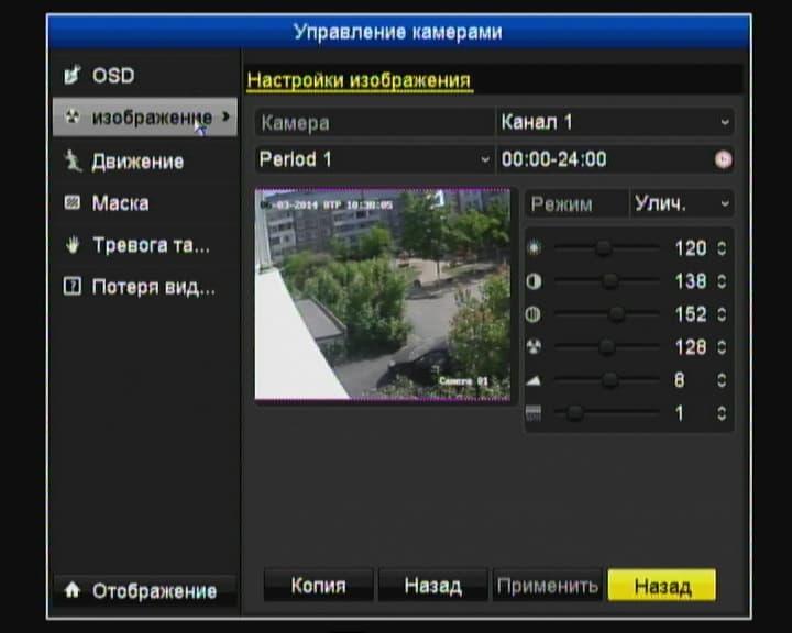 Нужно отметить кнопку Копия — этот инструмент появляется в некоторых пунктах настроек системы. Данная кнопка позволяет скопировать в буфер настроенные параметры камеры с тем, чтобы быстро присвоить их любой другой камере. Таким образом, исключается необходимость обязательной настройки каждой камеры в отдельности.