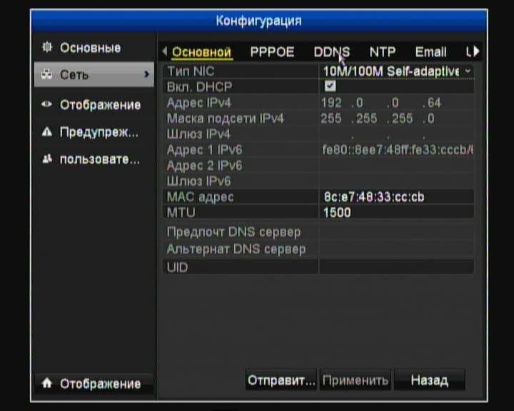 | Настройки телевизионного стандарта (PAL/NTSC), настройки даты/времени, активация входа по паролю | Сетевые настройки: PPPOE, DDNS (имеется поддержка фирменного сервиса Swann DNS), электронной почты отправителя и получателя (поддерживается несколько отправителей и адресатов) |