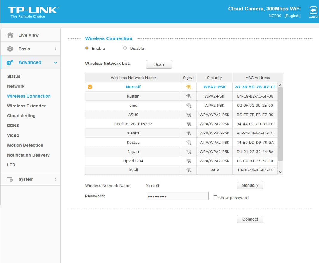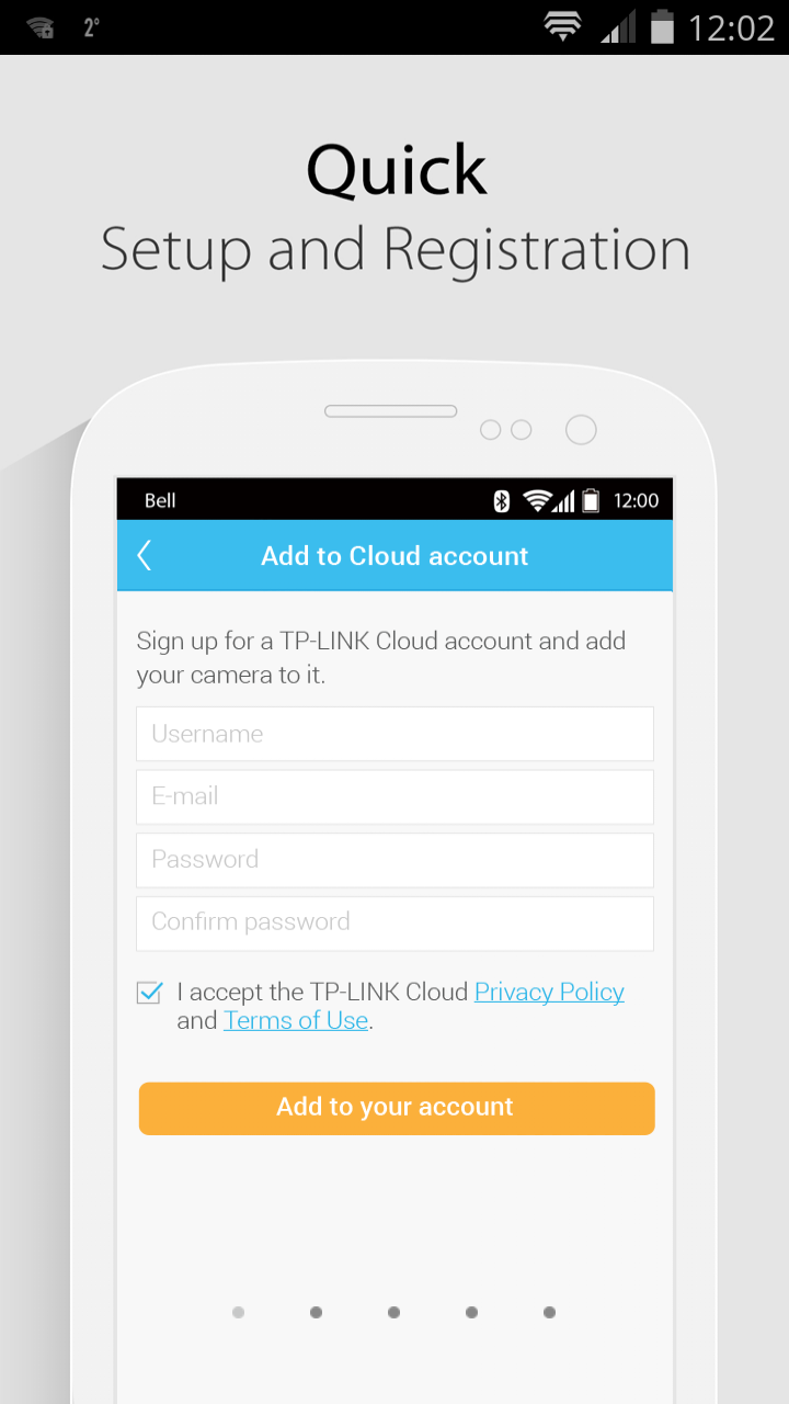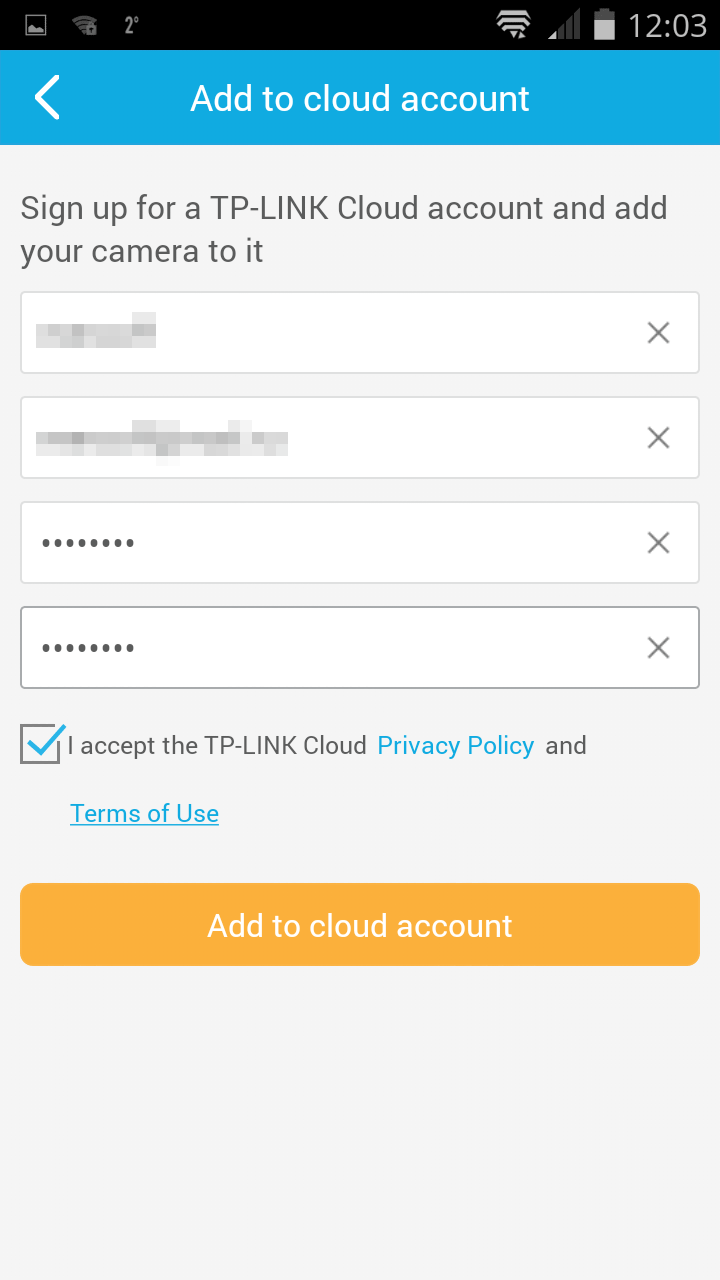 Для осуществления первого способа камеру требуется подключить кабелем к маршрутизатору и дождаться, пока индикатор на лицевой панели не загорится зеленым светом. Теперь понадобится смартфон или планшет с установленным приложением TP-Link Skylight (версия для Android), подсоединенный к той же локальной сети, к которой подключена камера. Следующим действием будет запуск приложения и регистрация в облачном сервисе TP-Link Cloud. Это займет в пошаговом мастере меньше минуты. Здесь же можно освободиться от проводов, осуществив беспроводное подключение, для чего потребуется выбрать нужную Wi-Fi-сеть, ввести к ней пароль и отсоединить от камеры кабель.