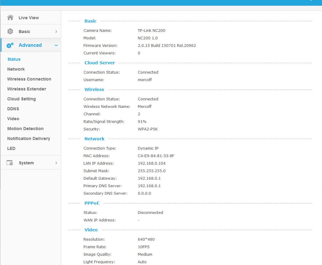 Все эти настройки оказываются доступны только при непосредственном подключении к самой камере, при заходе на ее веб-сервер. Зайти на него можно, набрав в адресной строке браузера текущий IP-адрес камеры (узнать точный адрес можно с помощью утилиты настройки или на страничке со списком клиентов маршрутизатора).
