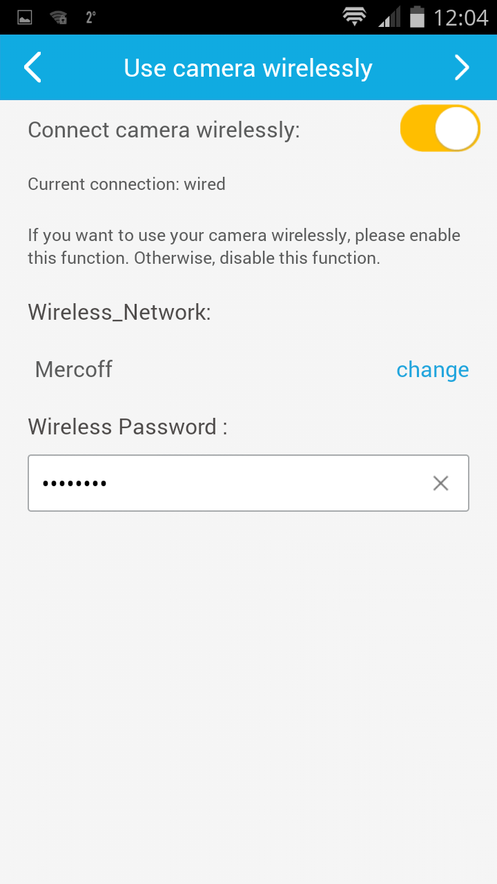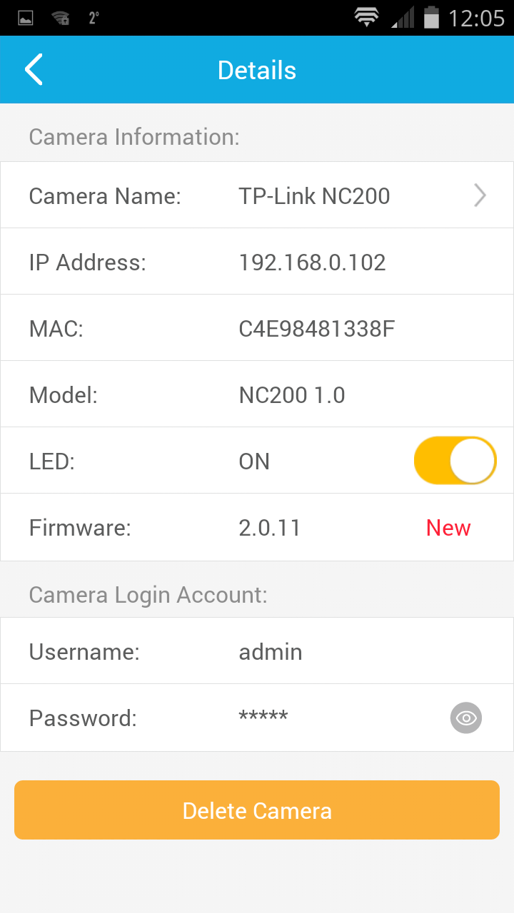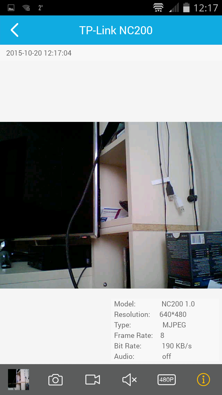 Приложение может работать и в альбомной ориентации, при этом изображение растягивается во весь экран с сохранением пропорций. Имеющиеся в приложении настройки и функции позволяют сделать очень немногое: изменить пароль к учетной записи и для входа в веб-интерфейс камеры, переименовать камеру, сделать стоп-кадр или записать короткий ролик, просмотреть записанный материал, включить/отключить трансляцию звука и выбрать один из двух вариантов разрешения: 320×240 и 640×480.
