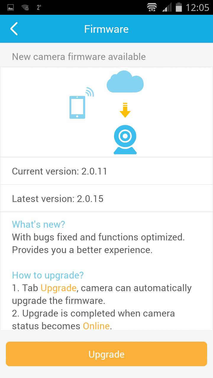 Чуть подумав, камера подключится к Wi-Fi-сети и тут же выдаст сообщение об обнаружении свежей прошивки (это наверняка случится, поскольку обновление программного обеспечения TP-Link осуществляет регулярно).