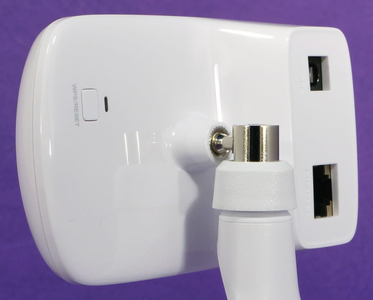 Служебные разъемы находятся на задней части корпуса: вход питания, LAN-порт и кнопка, выполняющая сразу две функции: WPS для полуавтоматического соединения с беспроводной сетью и сброс к заводским настройкам при пятисекундном удержании кнопки.
