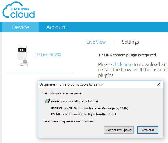 По окончании настройки приложение запустит браузер со страничкой камеры в сервисе TP-Link Cloud. На для того, чтобы увидеть живую картинку с камеры, потребуется скачать и установить специальную фирменную надстройку, обновить страницу и разрешить активацию данного плагина.