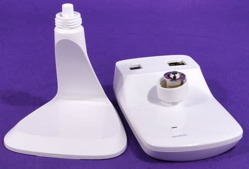 Площадка, к которой крепится камера, ничем не утяжелена — значит, при проводном подключении камера может легко завалиться набок. Избежать этого можно, закрепив аппарат винтами или шурупами, для чего в основании имеются отверстия. Шляпки саморезов видны не будут благодаря декоративной пластине, которая нащелкивается сверху.