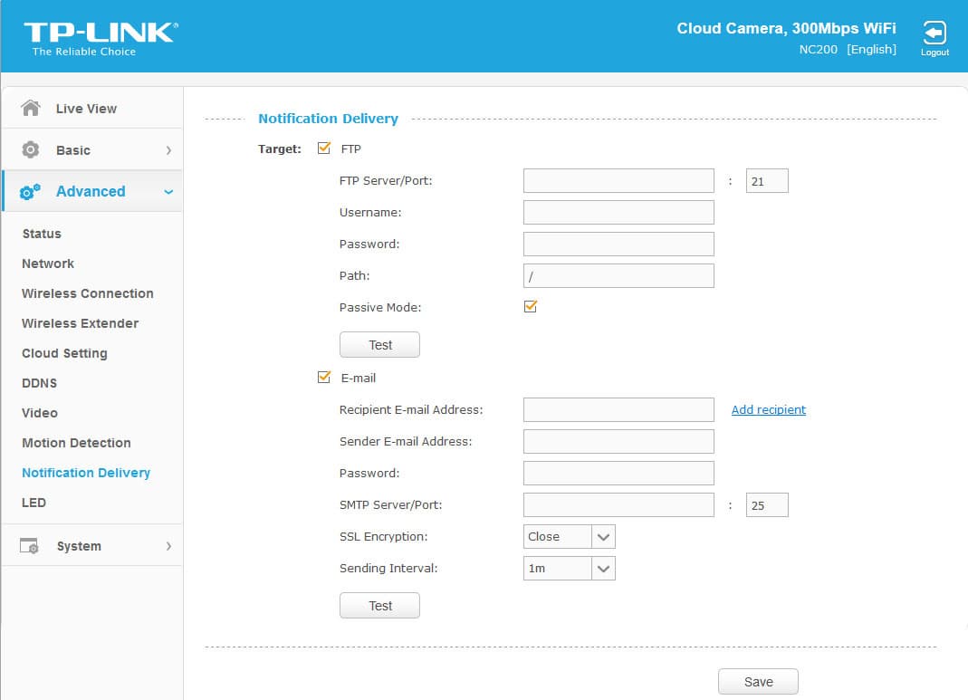 Наконец, еще одна важнейшая функция — оповещение. Камера умеет сигнализировать о появлении движения в кадре двумя способами: отсылкой на один или несколько электронных адресов целой серии стоп-кадров, содержащих момент движения, либо заливкой стоп-кадров с запечатленным событием на заданный FTP-сервер.