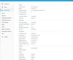 | Подробное описание текущего состояния камеры | Сетевые настройки, включение поддерживаемых протоколов | Список доступных беспроводных сетей, подключение к ним |