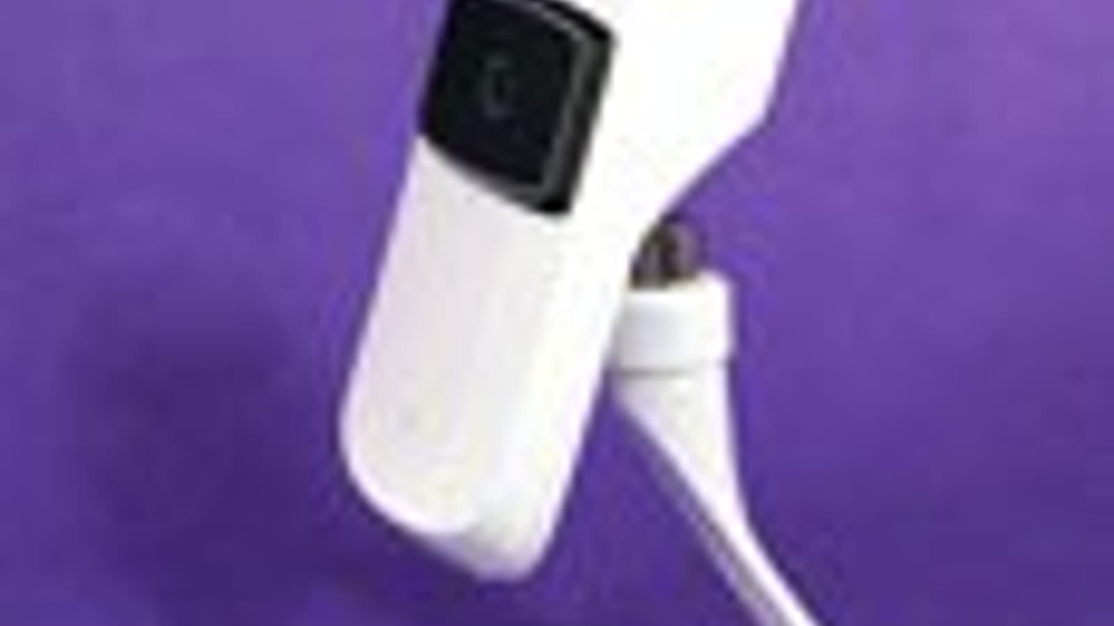 Корпус аппарата выполнен из белого глянцевого пластика, объектив обрамлен черным — так камера выглядит заметнее.