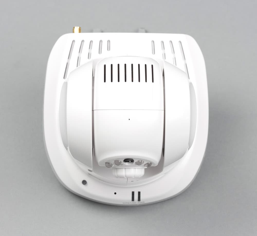 Камера не имеет защиты от воздействия окружающей среды и предназначена для работы внутри помещений. Ее поворотный механизм с дистанционным управлением позволит ориентировать объектив в очень широких пределах: 340° в горизонтальной плоскости и 115° в вертикальной, что расширяет возможности наблюдения и сильно упрощает установку — камеру всегда можно будет сориентировать в нужном направлении.