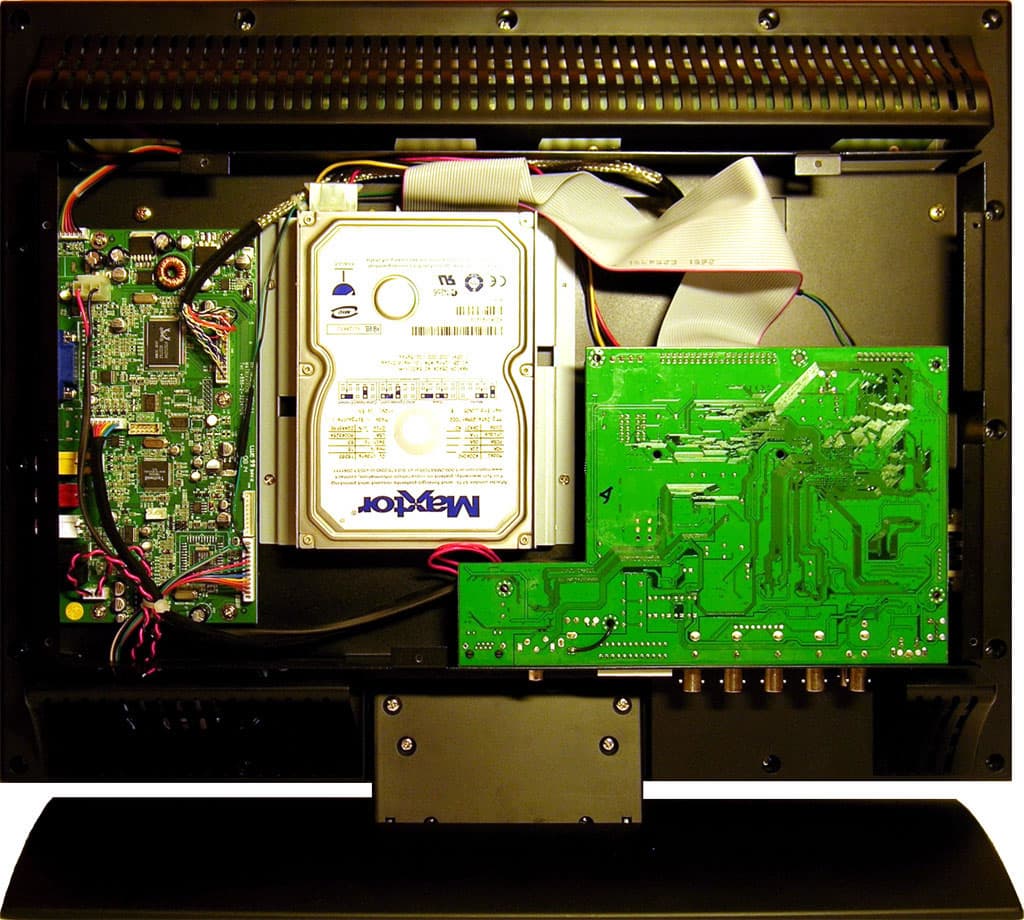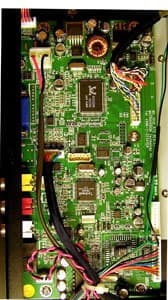 Фактически, внутреннюю компоновку можно разделить на три зоны — это плата управления LCD-монитором, жесткий диск и плата видеорегистратора. Для «бородатых железячников» приведем пару фотографий плат: