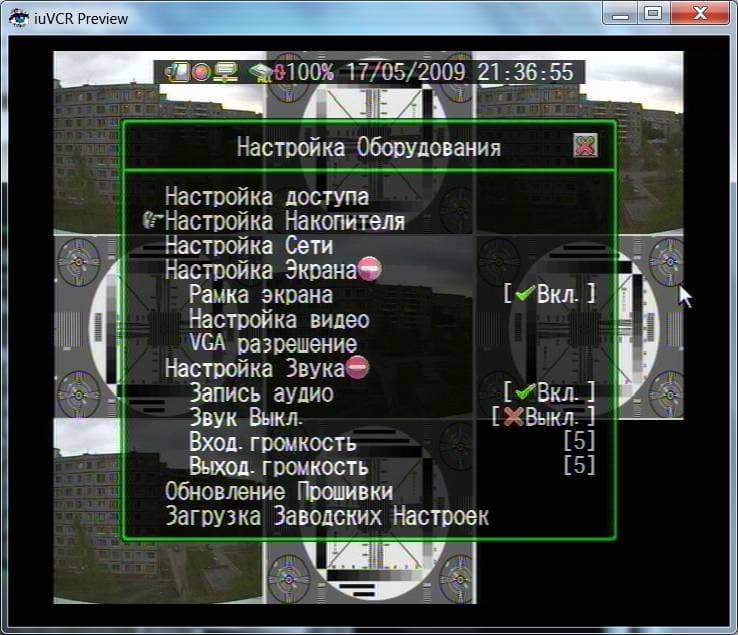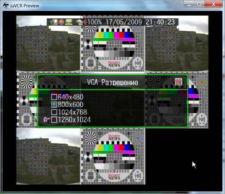 В случае, если ваша модификация видеорегистратора оборудована VGA-выходом, вам будет полезна настройка "VGA разрешение". Она позволит установить оптимальное разрешение на мониторе (как известно, есть зависимость диагонали LCD-монитора и оптимального разрешения на нем). Доступные варианты 640х480, 800х600, 1024х768, 1280х1024: