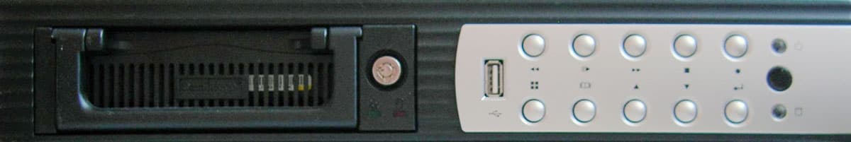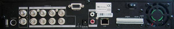 Разница лишь USB-разъеме на передней панели и в немного другой модели салазок для жесткого диска. Что это обновление предыдущей модели? Или что-то новое в старом корпусе? Мы обязательно это выясним, но немного позже, а пока что взглянем на заднюю часть видеорегистратора:
