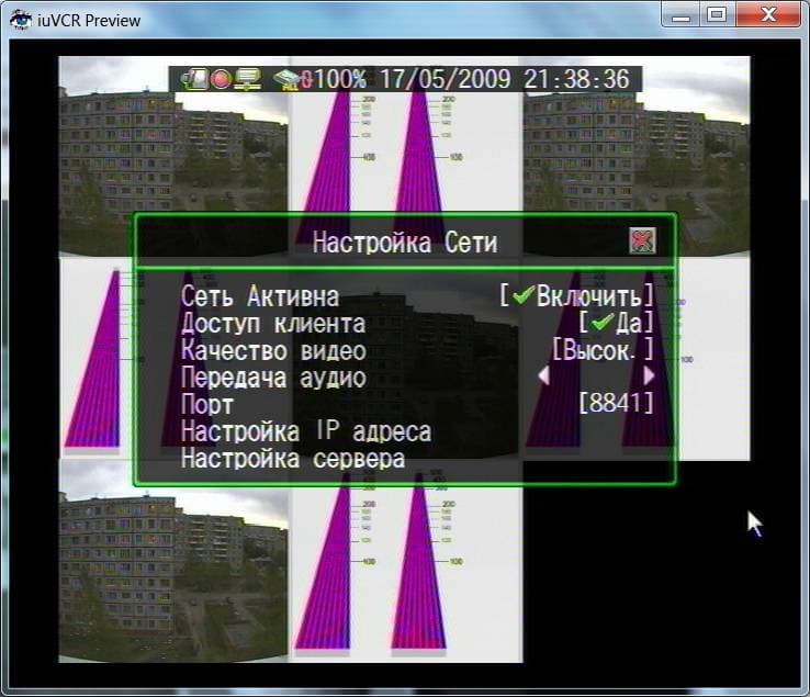 Еще нужно отметить следующее передача видеопотока по сети идет в сжатом с помощью кодека MPEG4 виде, и для того, чтобы оптимизировать передачу видеопотока по сети (а сети у нас бывают разные скоростные и не очень) производитель предусмотрел подстройку ширины передаваемого потока "Передача видео". Точных величин нам выяснить не удалось, но доступны три степени сжатия это низкая, нормальная и высокая. Соответственно, и качество видео, полученное из сети, также может разниться. Позже мы увидим примеры скриншотов, полученных из сети.