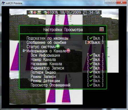 Первый же пункт этого меню "Сообщения об ошибках" выведет на экран журнал сообщений об ошибках в работе "Video Control T8USB". Без сомнения, это очень полезный пункт, который может значительно сократить время диагностики и устранения какой-либо неисправности. В "Настройке просмотра" мы можем определить, как и что мы будем видеть на экране: