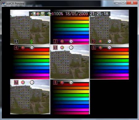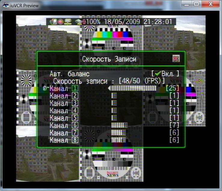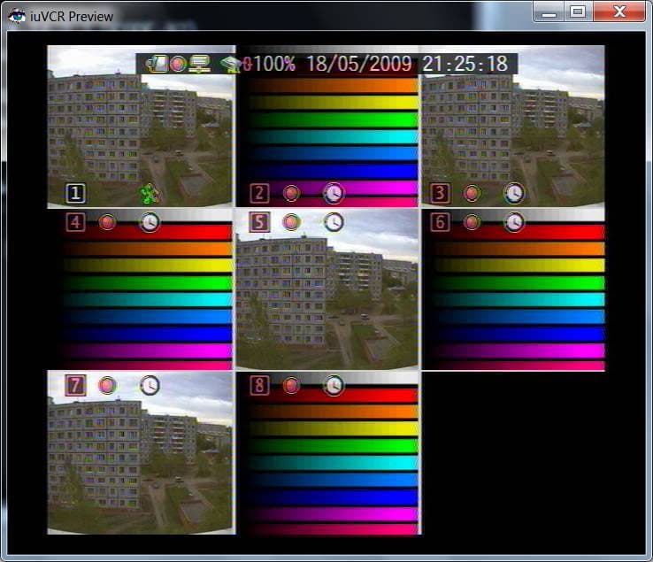 Тестовый видеоролик подавался на вход видеорегистратора, запись происходила с минимальным уровнем сжатия (кстати, об уровне сжатия использовать без крайней необходимости более сильное сжатие представляется нам нецелесообразным по причине сильно ухудшающегося качества записанного видео, а учитывая современные цены на жесткие диски, это действие предстает и вовсе в неприглядном виде). После чего происходил перенос записанного файла на ПК и его дальнейшее изучение. Файл изучался в проприентарном (внутреннем формате разработчика устройства), конвертацию в .avi контейнер мы не делали, чтобы избежать дополнительных преобразований видео (и внесение в него дополнительных искажений). Структура файла такова, что в нем содержатся все восемь записанных каналов, и чтобы увидеть полноразмерный кадр, нужно щелкнуть мышкой на выбранном канале. Файл для изучения вы сможете взять здесь (внимание! размер файла 68,5 МБ!), а плеер для его открытия здесь (размер менее одного МБ).