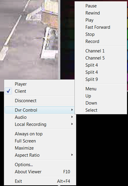 Но управлять видеорегистратором отсюда намного удобнее. Вот к чему приводит клик правой кнопкой мышки на экране: