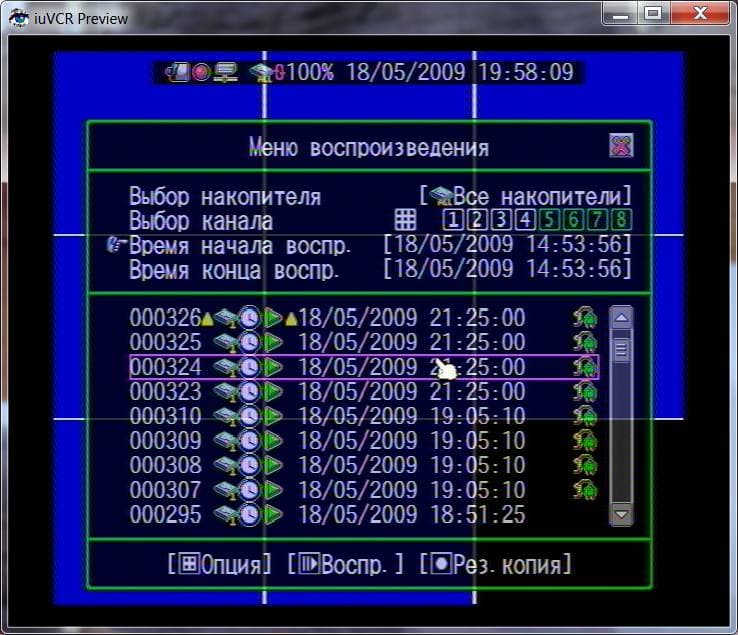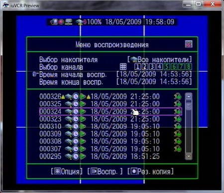 Далее уделим немного внимания процессу изучения видеоархива. При нажатии на клавишу воспроизведения (хоть на пульте, хоть на самом устройстве) откроется следующее: