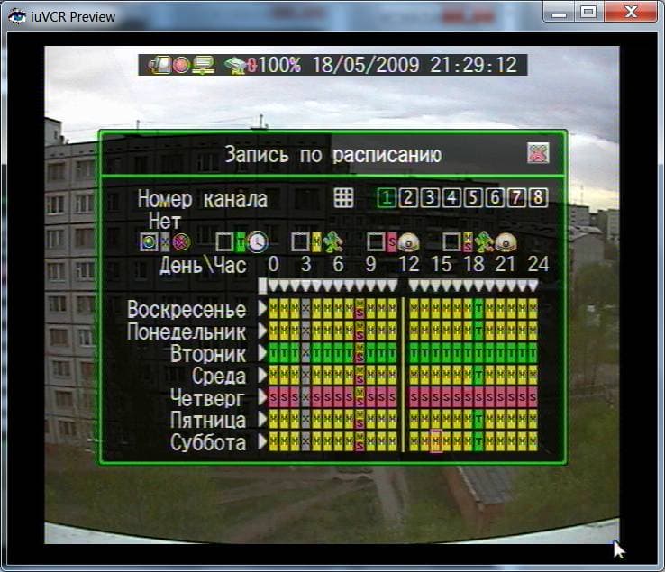 Именно здесь мы можем определить, когда и какой канал видео в каком режиме записи будет работать. Причем сделало это все настолько наглядно, продуманно и просто, что вызывает легкое ошеломление. Что сказать, реализация пункта зачёт!