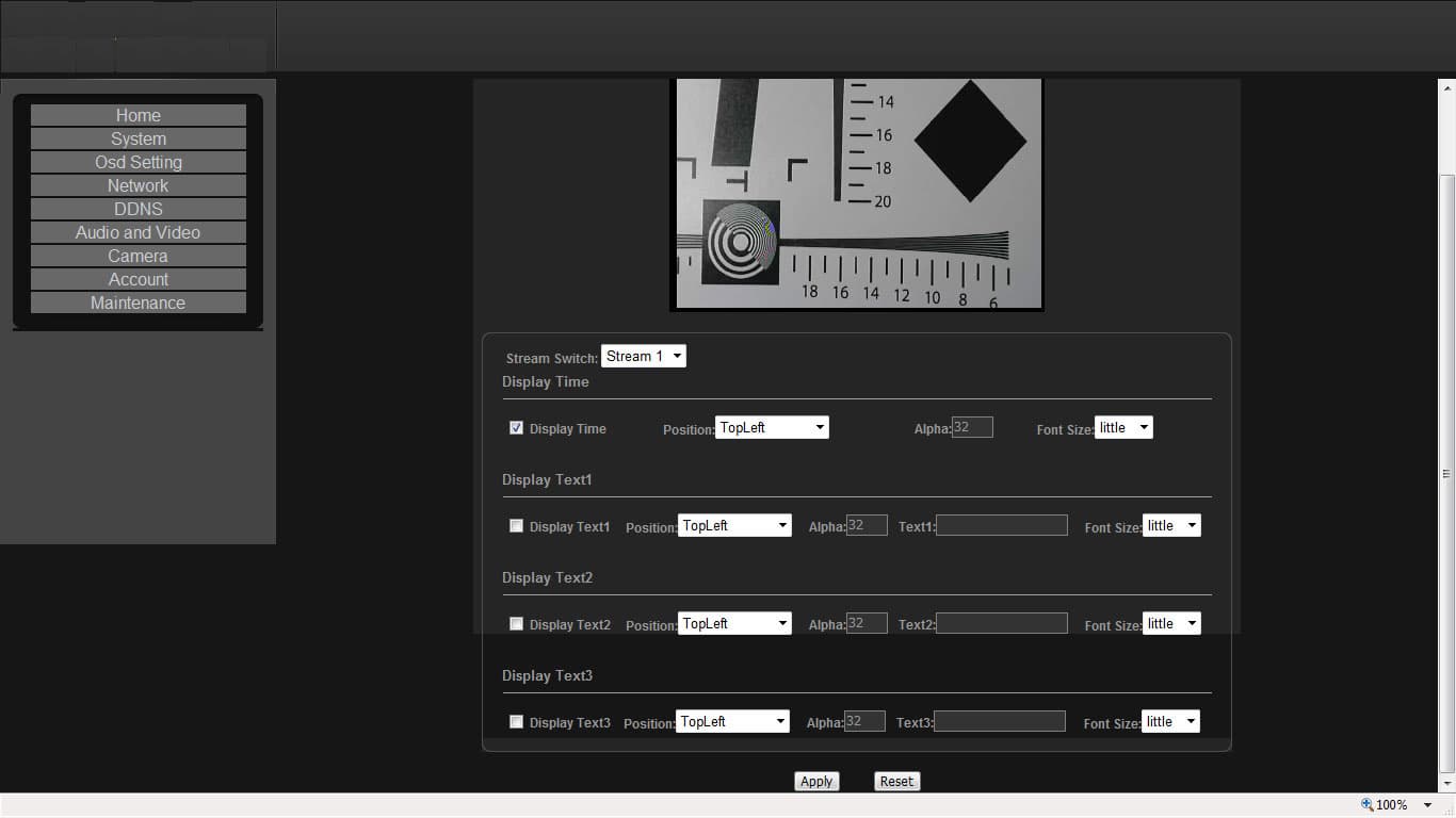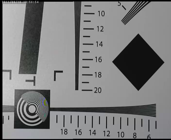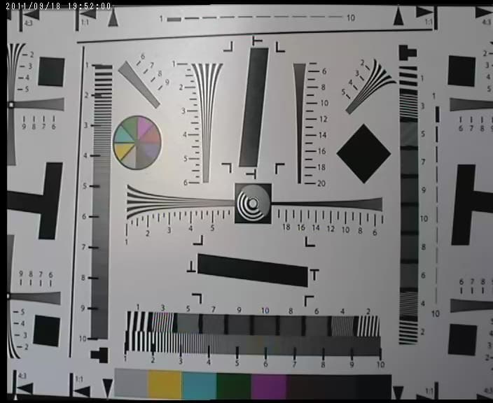 Перед тестированием VC-IP6800PTZ мы провели ряд подготовительных мероприятий, а именно: восстановили на камере «умолчальные» заводские настройки, установили максимальный битрейт и качество видеопотока, в качестве кодека видеопотока был выбран H.264. Поместив перед объективом камеры тестовую миру, увидели следующий результат:
