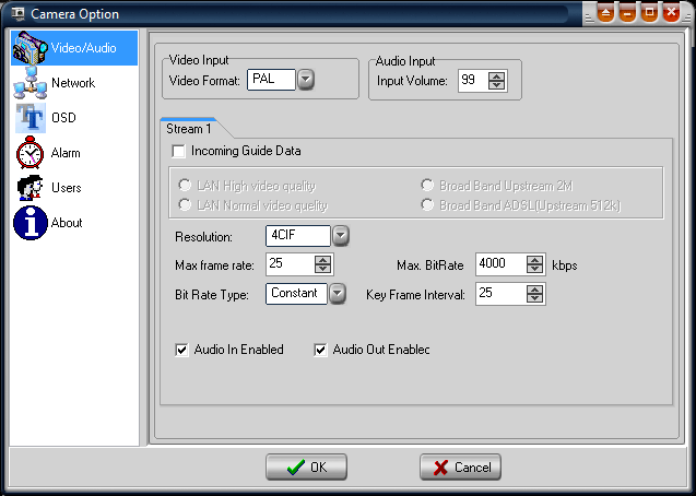 В связи с тем, что подготовка обзора и тестирование камеры проходили на широкоформатном (16:9) мониторе, изображение выглядит вытянутым по горизонтали. Тем не менее в архив записывается кадр с правильным соотношением сторон (немного позже мы в этом убедимся). Настройки камеры в этом ПО практически полностью совпадают с таковыми у встроенного веб-сервера:
