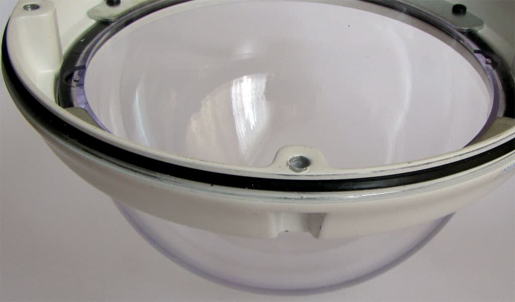 Хорошо различим резиновый уплотнитель. Надо сказать, что отделить верхнюю (прозрачную) часть конструкции нам удалось далеко не без усилий. Что является хорошим знаком — герметичность камеры заслуживает всяческих похвал. Подозреваем, что -10°C — это далеко не предел для VC-IP6800PTZ. При изучении камеры обратили внимание на одну странность: