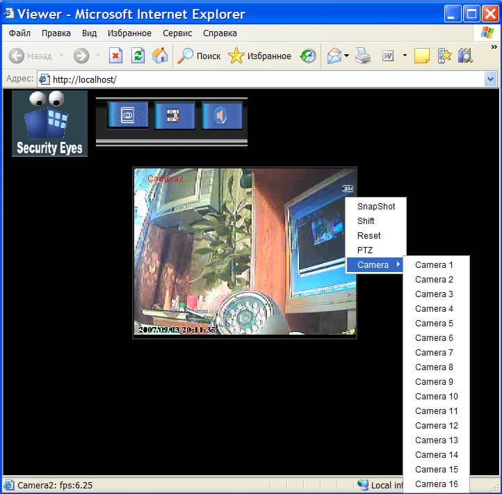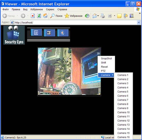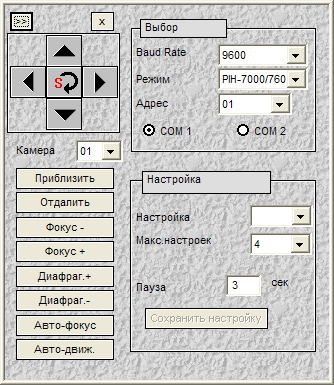 Из этого меню возможно управление так называемыми "куполами", т.е. видеокамерами, оснащенными поворотными механизмами и возможностью зуммирования.