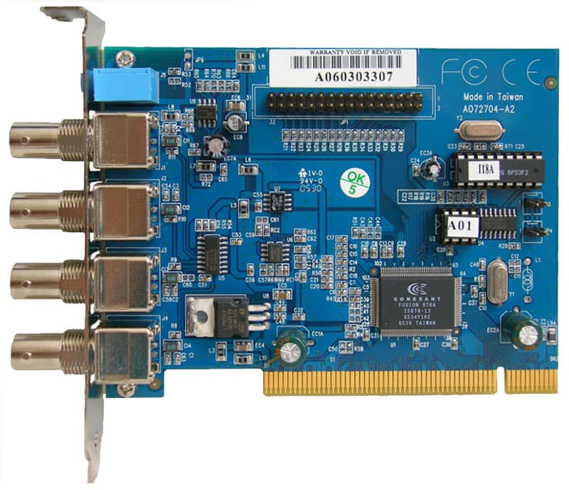 Как видно, плата имеет отнюдь не миниатюрные размеры. Объясняется этот факт тем, что на каждом канале используется свой собственный чип Conexant 878A (характеристики которого указаны выше), что и делает возможными такие вещи, как одновременный захват видео и звука при 30 кадрах в секунду на канал. Что касается разрешения кадра 320 на 240 точек, то, связавшись с разработчиками, нами был получен ответ, в котором сообщается, что, увеличив размер кадра (а спецификация чипа позволяет это сделать), мы сильно загрузим PCI-шину компьютера, что приведет к неминуемому его зависанию. То есть, технически подкованный человек скажет так: пропускная способность PCI-шины компьютера не позволит передать подобный объем информации.