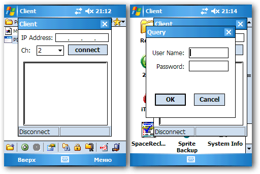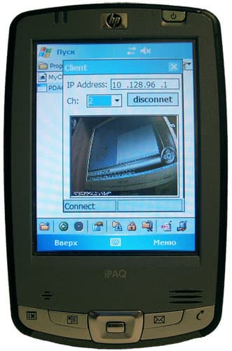 То же самое можно проделать и с любого мобильного устройства, имеющего поддержку Java-апплетов из браузера. Но нужно кое-что пояснить без дополнительно установленного на КПК программного обеспечения запустить на нем Java-апплет не получится, а значит, картинки мы не увидим. То есть, необходимо подобрать подходящую Java-машину, и в браузере КПК мы увидим эту же картинку. Тем же, кто по каким-либо причинам не может пойти этим путем, можно предложить следующее выбрать в меню настроек среди списка серверов "PDA-сервер", далее с идущего в комплекте с платой диска "закинуть" на КПК два файла из папки "PDA Client", запустить, ввести ip-адрес, и далее имя и пароль: