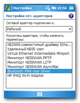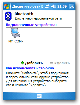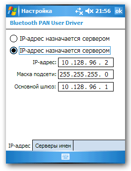В нашем случае КПК и компьютер соединяются в одну сеть с помощью Bluetooth-адаптера. Настройки соединения несложны. Со стороны компьютера мы самым обычным способом присваиваем ip-адрес Bluetooth адаптеру,