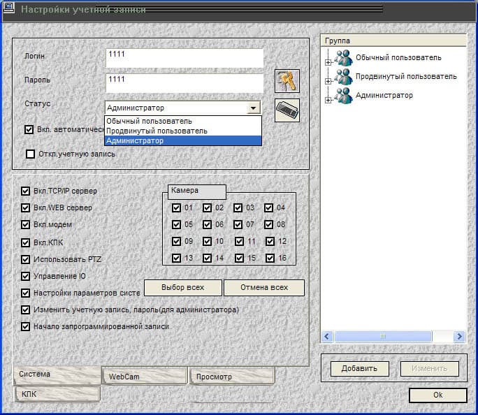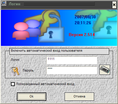 Лишь взглянув на одно это окно, можно догадаться, что в ПО имеется многоуровневая система доступа, но об этом чуть ниже. А вот и вид основного, рабочего окна: