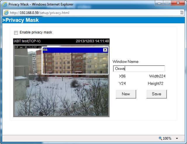 Наконец, одна из важнейших в плане функциональности настроек: детекция движения. Здесь можно создать до трех зон, каждая из которых будет содержать свои настройки чувствительности. Эти настройки в свою очередь складываются из двух составляющих: Sensitivity (чувствительность) и Percentage (процент). Первый параметр отвечает за величину порога срабатывания детектора движения; чем выше значение этого показателя, тем чувствительнее камера к движению в кадре. Второй параметр не менее важен: он определяет площадь изменяющихся (движущихся) пикселей относительно зоны слежения; чем ниже значение данного показателя, тем выше чувствительность камеры к движению мелких объектов.