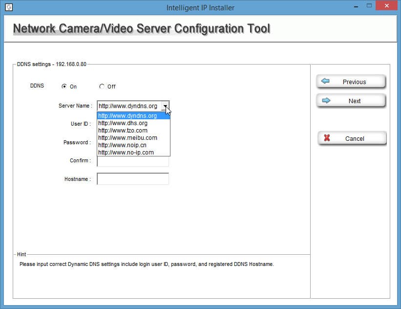 | Сетевые настройки с возможностью подключения к Интернету посредством PPPoE | Выбор и настройка DDNS сервиса для доступа к web-интерфейсу камеры извне |