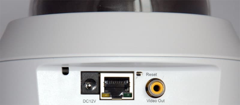 Теперь поговорим о Zavio D5113. Прежде всего, при взгляде на эту IP-камеру замечаешь без малого пару десятков ИК-светодиодов. Их назначение — подсветка объекта наблюдения даже в полной темноте. Причем, учитывая, что рабочий диапазон светодиодов инфракрасный, глаз человека эту подсветку не видит. Корпус камеры выполнен из пластика, купол снимается так же, как и у предыдущей модели, — посредством поворота купола относительно торцевой части камеры. Подключение IP-камеры к сети осуществляется с помощью этой панели: