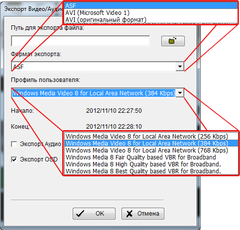 Выделив нужный фрагмент, можно его экспортировать в привычные для обычного пользователя форматы видео: