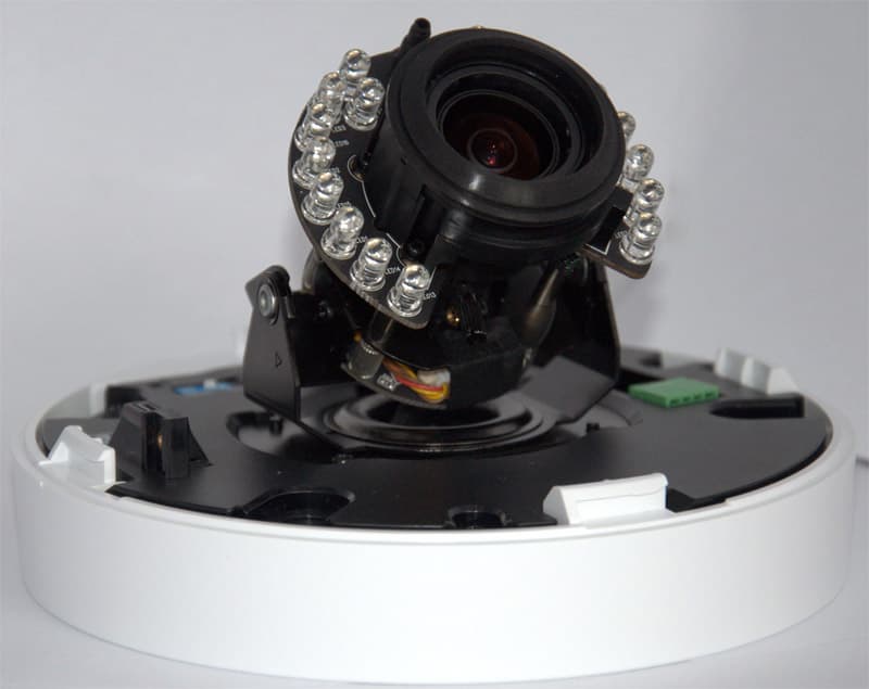 Начнем с модели Zavio D3100. Как видно на фото немного выше, эта IP-камера представляет собой купол достаточно неброского внешнего вида. Это немаловажная деталь для тех, кто не хочет акцентировать внимание на своей системе безопасности. Прозрачный купол снимается легким круговым движением, и нам становится доступен следующий вид: