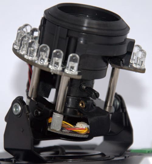 Как и предыдущая модель, эта камера допускает регулировку сектора обзора с помощью трехосной системы позиционирования, что хорошо различимо на фото выше. Движение модуля камеры по осям требует небольших усилий, что, на наш взгляд, очень правильно.