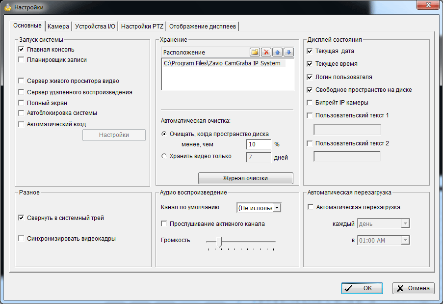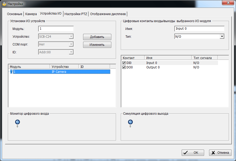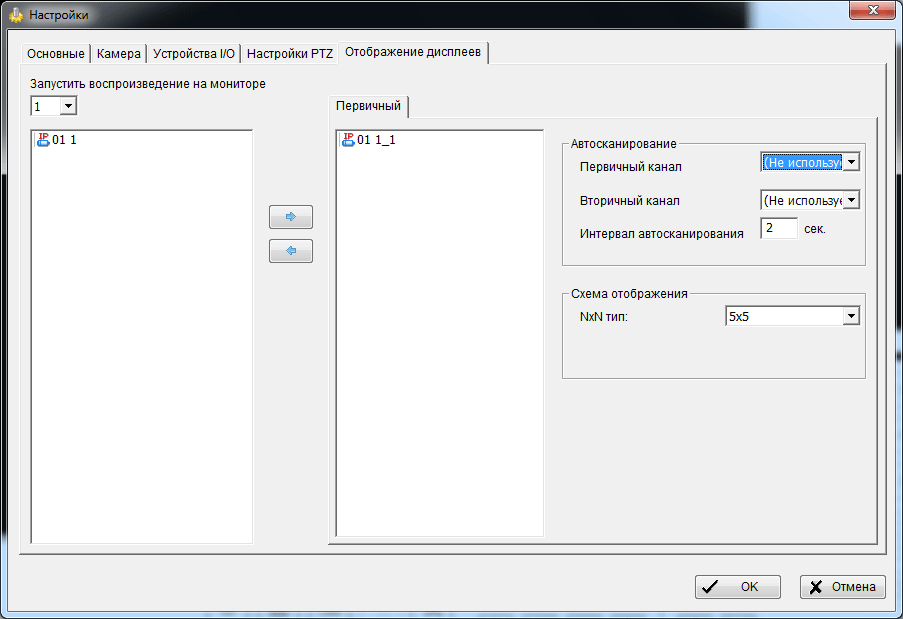 Обратите внимание, что и входную, и выходную группу контактов вы можете настроить как «нормально открытую», так и «нормально закрытую». Вкладку PTZ-управления мы пропустим, потому как наша нынешняя IP-камера не поддерживает подобное управление, а вот во вкладку «Отображение дисплеев» мы все же заглянем: