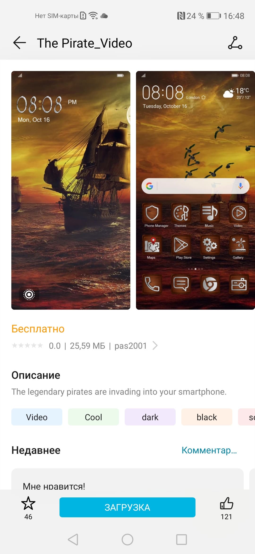 В журнале тем вы можете найти как простые обои, так и полноценные темы с измененными иконками, экраном блокировки, шторкой уведомлений и даже динамическими обоями. Ассортимент в магазине просто огромный: от нейтральных пейзажей до тематических пиратских мотивов.