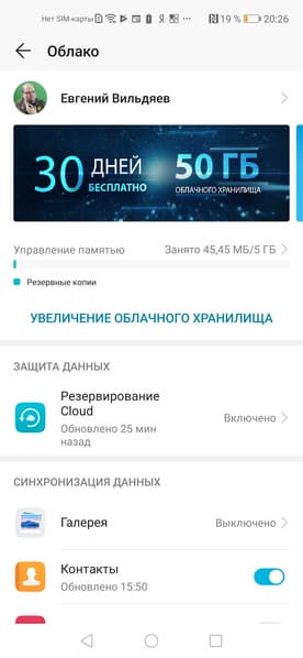 Помимо бэкапов, в облаке также можно хранить обычные документы и любые другие файлы. По умолчанию всем пользователям доступно 5 ГБ бесплатного места, при желании можно докупить дополнительное место, например, 50 ГБ будут стоить 59 рублей в месяц. Для владельцев Honor 20 и Honor 20 Pro до 31 октября 2019 года действует акция: им полагается три месяца использования этого объёма в подарок. Обладатели других моделей Honor до 31 декабря могут получить один бесплатный месяц использования облачного хранилища.