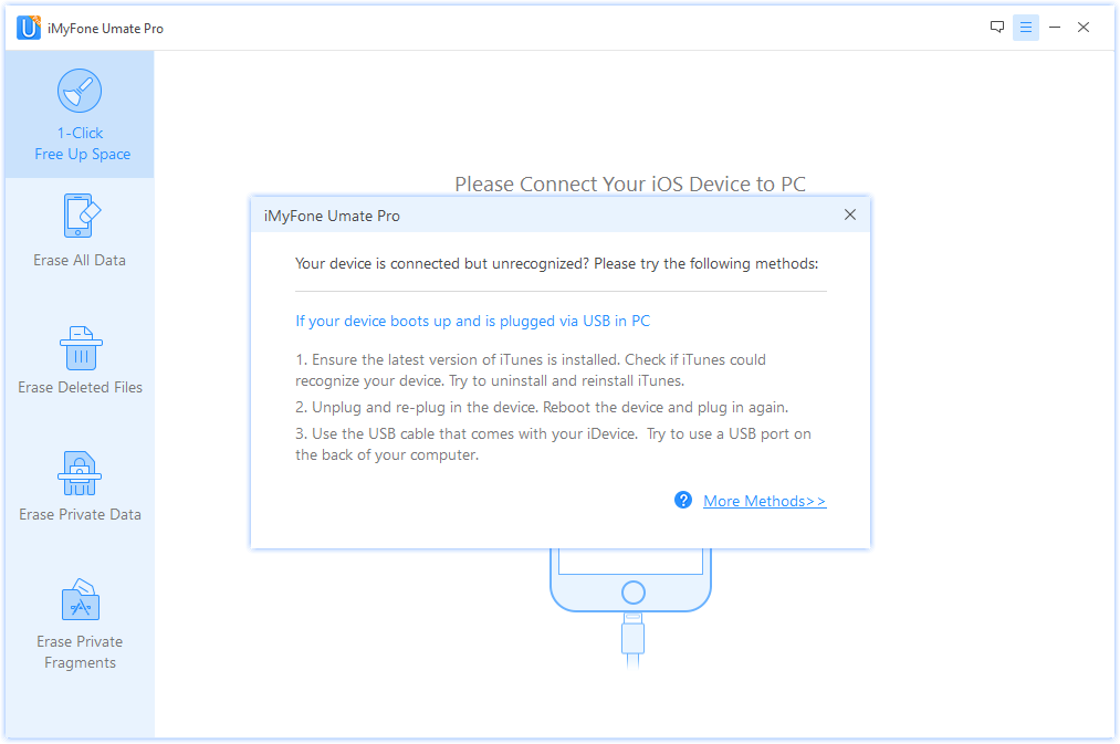 iMySoft Umate Pro работает без джейлбрейка iOS, поэтому удобство работы с приложением несколько снижено. Для того, чтобы тщательно «пропылесосить» память iOS-гаджета в посекторном режиме, программе без джейлбрейка приходится самостоятельно делать бэкап устройства на компьютер, производить с ним необходимые манипуляции, а затем загружать бэкап обратно на устройство. Иначе никак: ограничения Apple, безопасность, вот это все.
