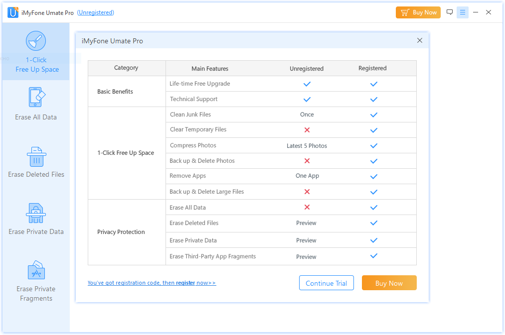Различие платной и trial-версии очень существенны. По сути, в бесплатном превью можно только удостовериться в самом факте работы приложения, почти не получив какого-либо результата. Зато производитель обещает вечную техническую поддержку для бесплатной версии Umate Pro. Какая щедрость…