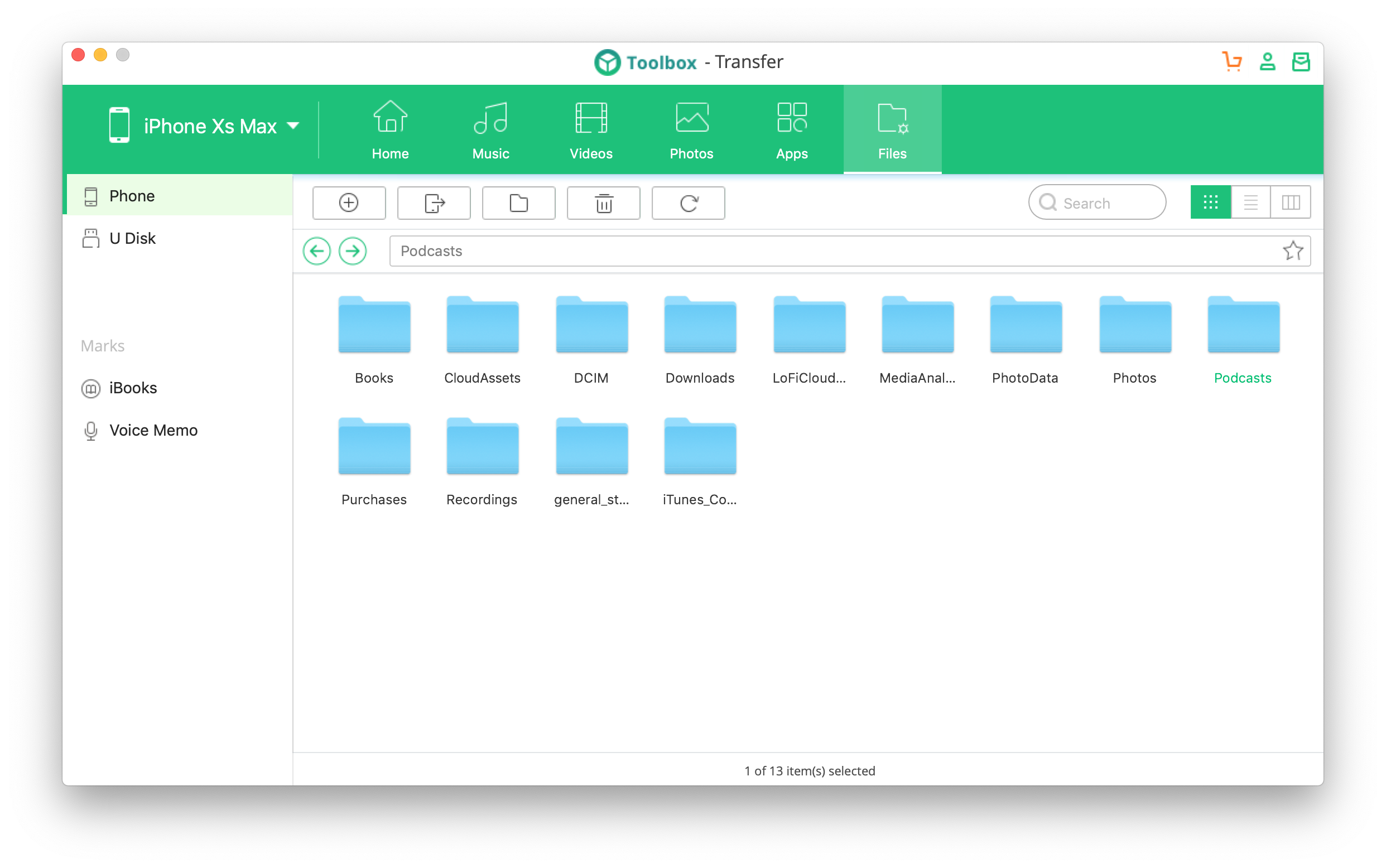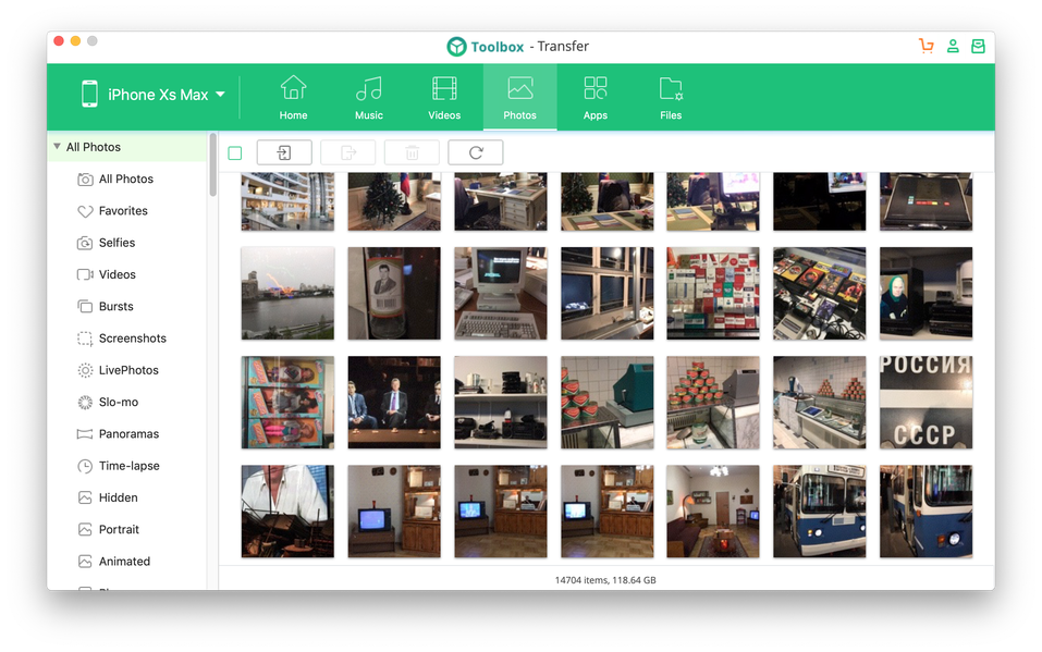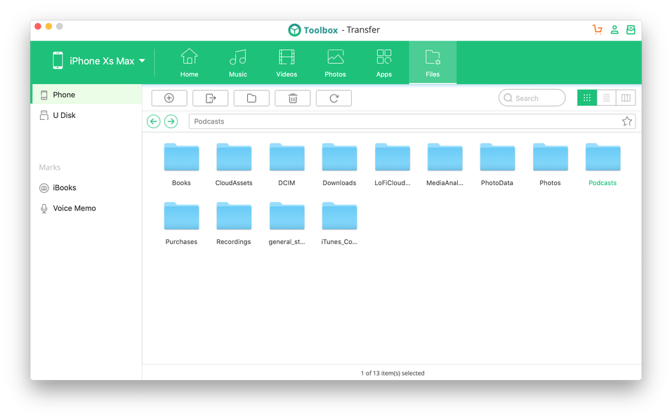 В отличие от раздельных бэкапов в Backup&Restore, Transfer позволяет просмотреть память устройства, выбрать конкретные файлы и экспортировать их. Для экспорта доступны музыка и плейлисты, видео, фотографии, приложения (для iOS 8.3 и более старых), а также несложный файловый менеджер дает доступ к открытой файловой системе устройства. В случае с iOS без джейлбрейка в этом менеджере особо не разгуляешься, лучше выбирать отсортированный медиаконтент из вкладок.