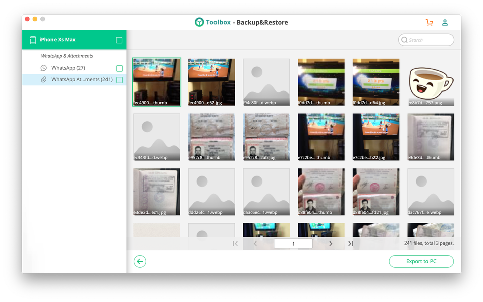 Процесс создания бэкапа WhatsApp с iPhone занял около 7-8 минут, хотя переписок и вложений в мессенджере было до смешного мало — менее 30 диалогов из нескольких сообщений, три десятка полноразмерных фотографий и россыпь аватарок контактов. Фактический размер полной копии составил всего 110 МБ, так что трудно объяснить, почему копирование со смартфона на компьютер заняло так много времени. Тем не менее, по окончании процесса iSkysoft Backup&Restore предложил посмотреть на компьютере переписку и приложенные фотографии, а также выбрать и экспортировать любые из них в дополнение к существующему бэкапу. Если история сообщений WhatsApp насчитывает годы и тысячи сообщений и изображений, то прямо в приложении есть фильтр и поиск по сообщениям — это значительно упрощает поиск сообщений с фотографиями, потому что листать вручную страницы с превью фото может быть утомительно.