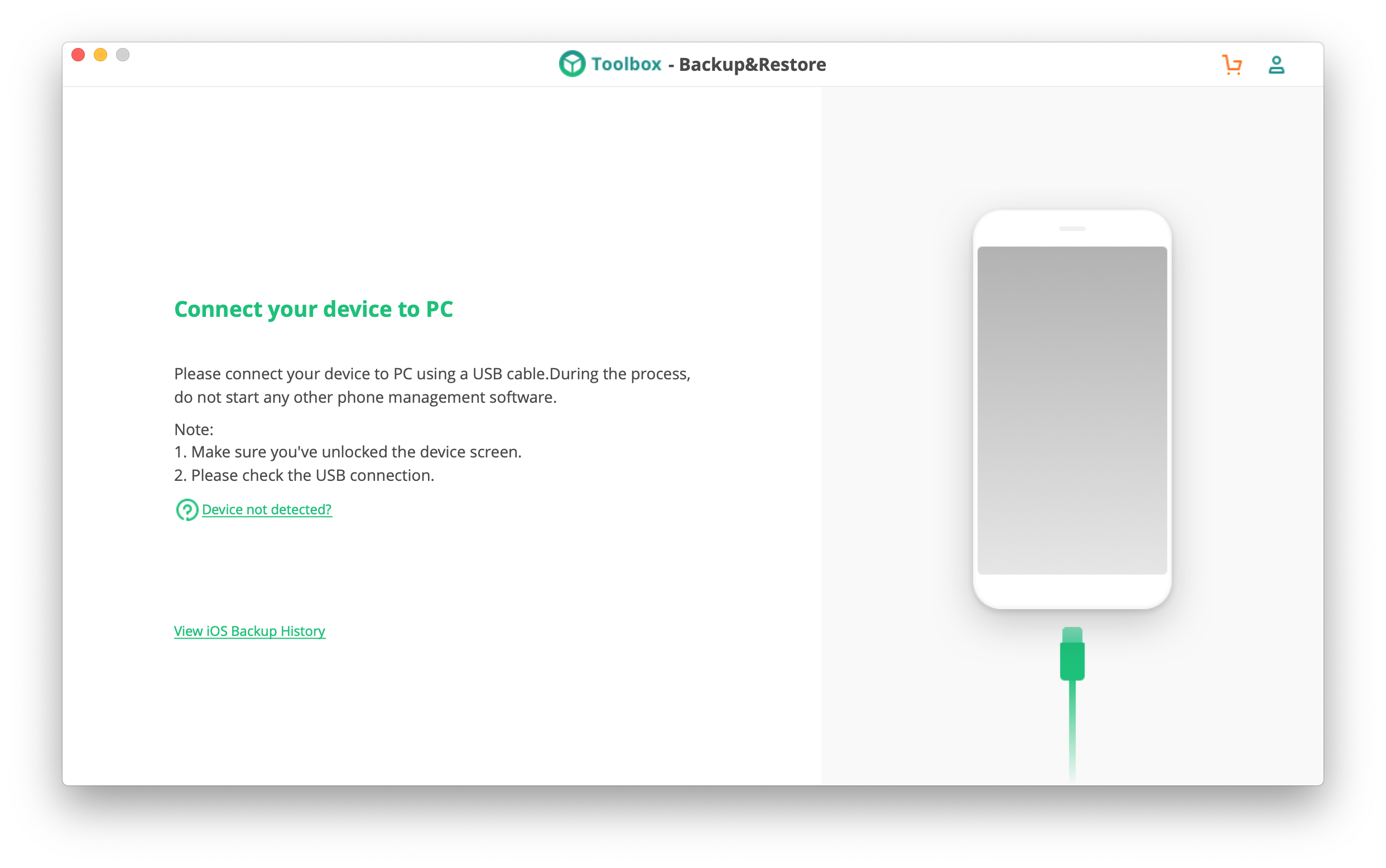Очень странно, что в интерфейсе Backup&Restore нигде не сказано, что поддерживаются только iOS-устройства — пока не подключите к компьютеру iPhone, программа даже не активирует свой основной интерфейс. Притом, что одна из функций приложения предназначена для Android-фонов.