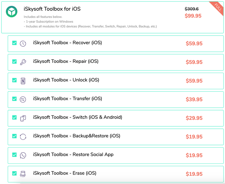 Больше о составе пакета и ценовой политике можно узнать на сайте разработчика. Сразу отметим, что каждая из утилит стоит ощутимых денег, а полный iSkysoft Toolbox обойдется в $99,95.