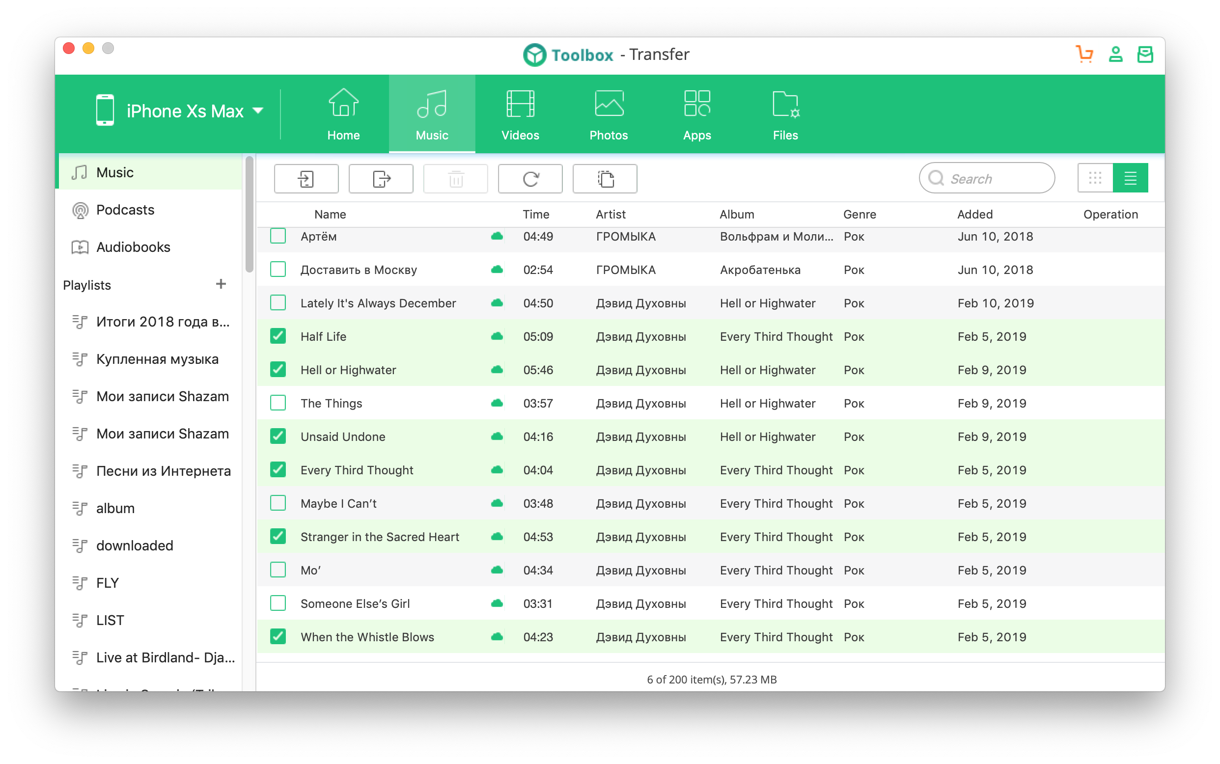 Музыка с iOS-устройства, загруженная из Apple Music в рамках подписки, на Android не проигрывается ни одним плеером. Но если это купленные из вашего iTunes-аккаунта треки, бесплатные подкасты или музыка, загруженная с компьютера в память iPhone, то ее прослушивание возможно. Файлы отправляются прямо в память смартфона в папку Music, выбрать в iSkysoft Switch копирование на карту памяти (если таковая есть в Android-смартфоне) нельзя.