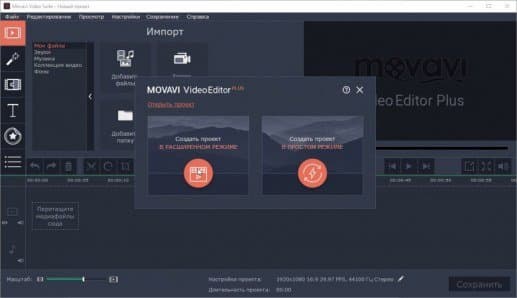 Как уже говорилось, разработчики Movavi следят за тем, чтобы их программами сумел воспользоваться каждый неподготовленный любитель. А поскольку любой новичок через какое-то время естественным образом становится компетентным пользователем, в этом видеоредакторе предусмотрено два уровня сложности: расширенный и упрощенный.