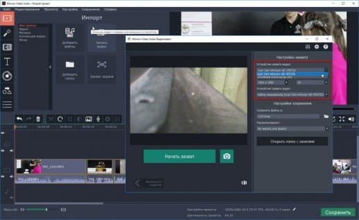 Модуль экранного захвата, встроенный в пакет Movavi Video Suite, может гордиться большим количеством настроек, среди которых есть выбор качества звука, частота кадров в видеозаписи, настройка визуального сопровождения нажатий клавиш во время захвата, вставка живого видео с вебкамеры и дополнительного звука с микрофона, ограничение времени беспрерывной записи и многие другие важные параметры.